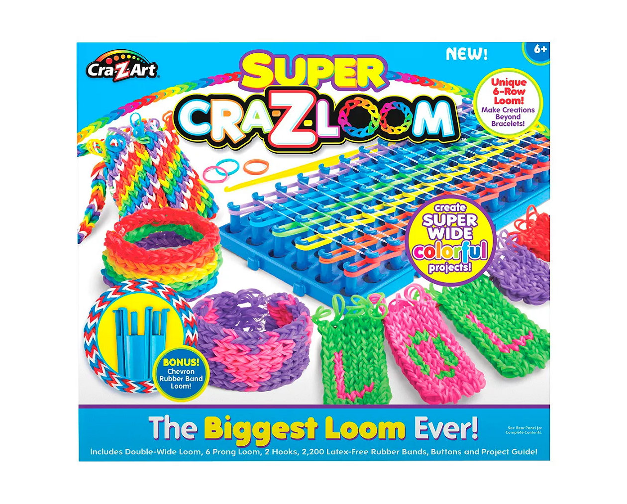 Unique 6-Row Loom. The Biggest Loom Ever! Create Super Wide Colorful Projects. Stretch your rubber band imagination beyond bracelets. Design and make cool colorful cuffs, cell phone cases, bottle sleeves, banners and more! Make original personalized rubber band projects! Includes alphabet templates so you can weave and loop initials, names or favorite expressions. Take rubber band project making to the next level! More to wear, share and display!